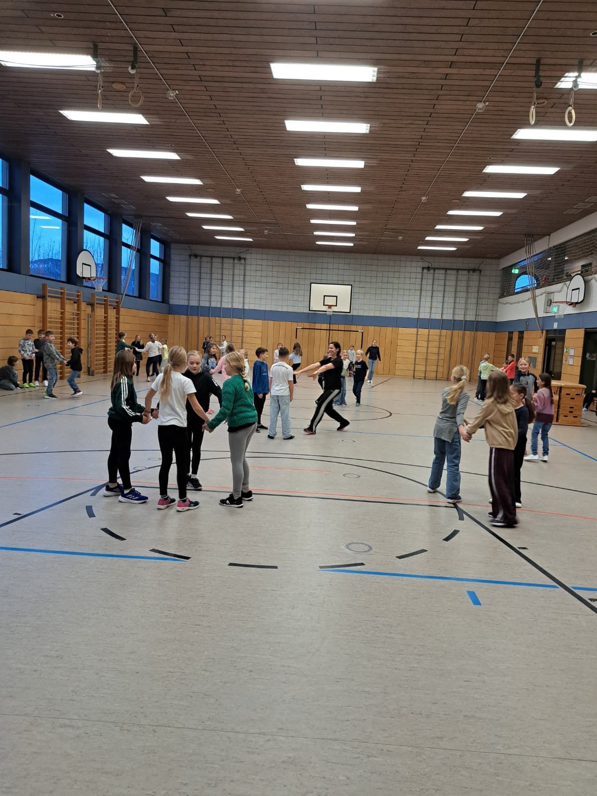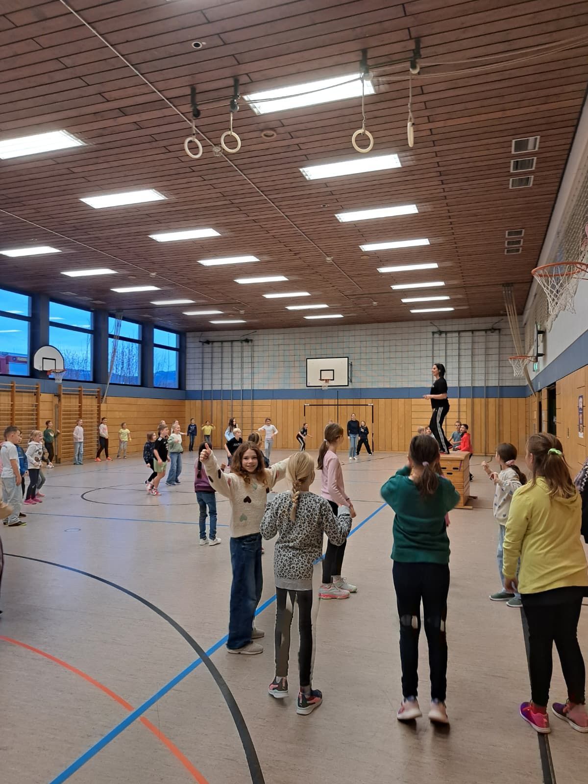 Unter der Leitung von Frau Wieber wurde in den höheren Klassenstufen getanzt, gehüpft und gelacht. In den Klassen 1 und 2 sorgte Frau Huber-Pohl für ebenso viel Bewegung, Rhythmus und Freude.