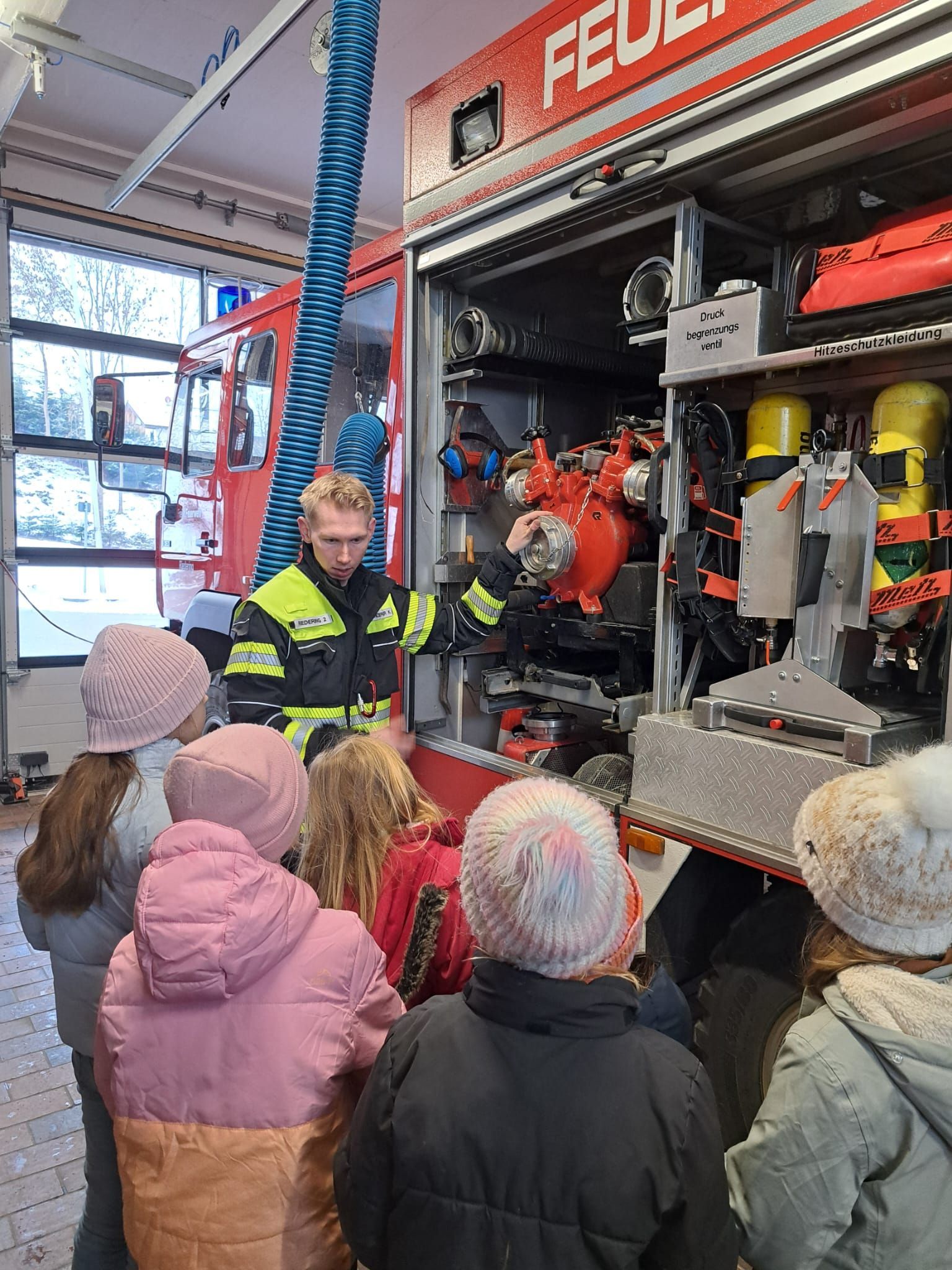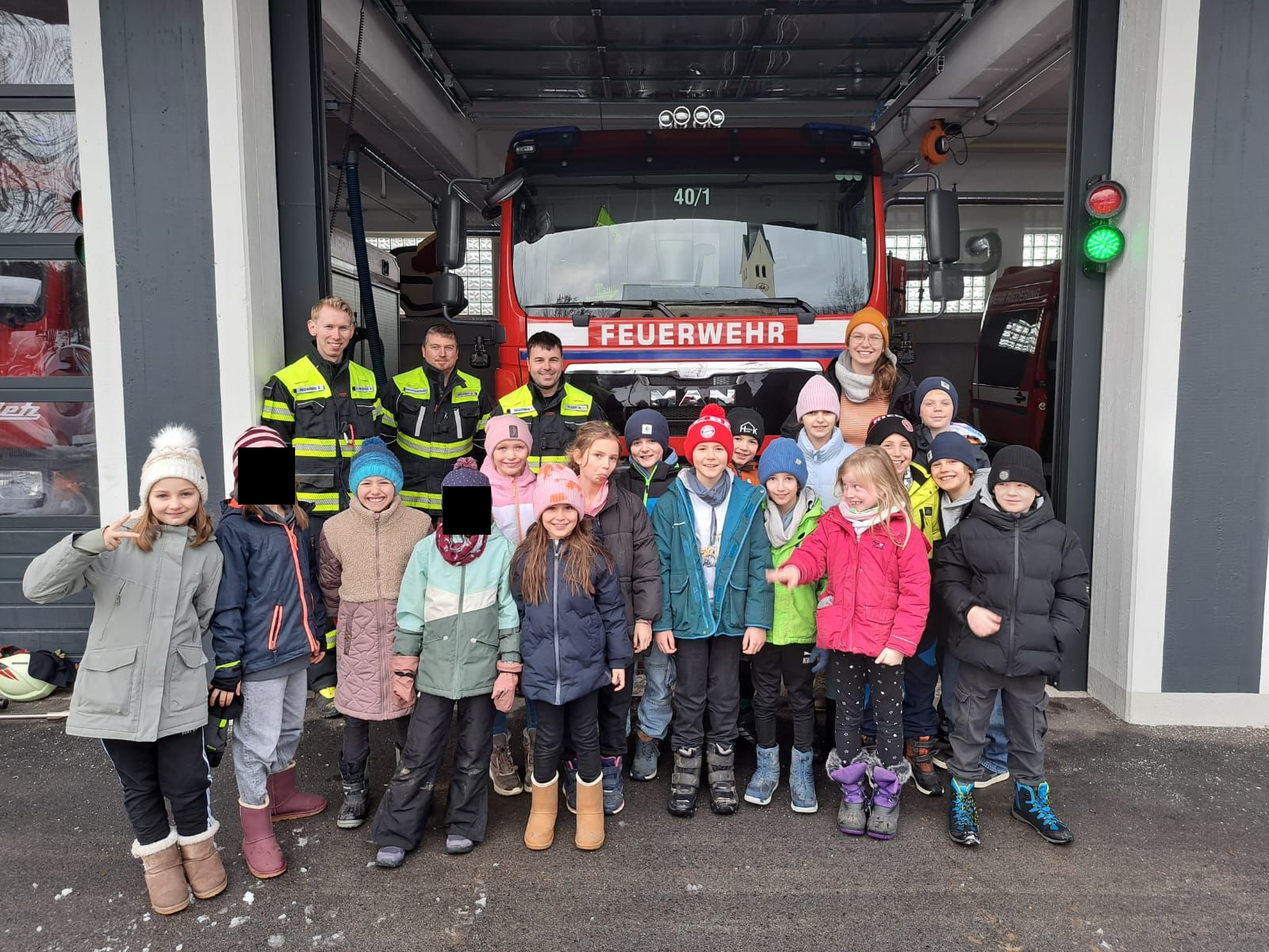 Am 29. Januar 2026 durfte die dritte Klasse einen spannenden Vormittag bei der Feuerwehr Riedering verbringen. Die Feuerwehrleute führten die Kinder durch das Feuerwehrhaus und erklärten anschaulich, was im Brandfall zu tun ist. Besonders beeindruckend war das große Einsatzfahrzeug, in das die Schülerinnen und Schüler hineinschauen durften. Mutige Kinder probierten sogar Atemschutzgerät und Maske aus.
