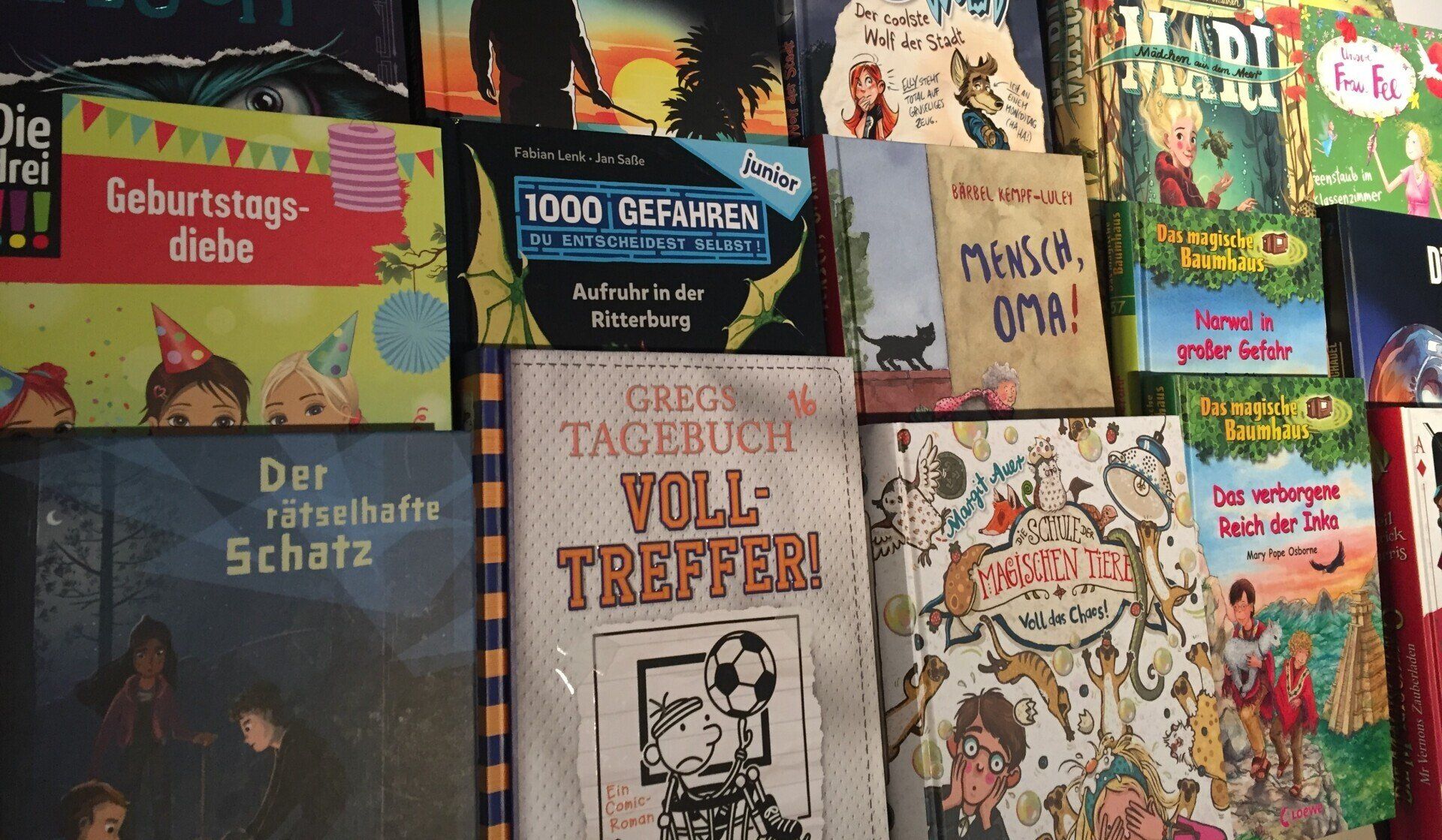 Am Elternsprechtag waren dazu in der Aula Büchertische aufgebaut. Eltern konnten diverse Kinderbücher erwerben, für die sie oder ihre Kinder nun Pate sind. Aufkleber im Buch verraten den jeweiligen Namen des Paten. Herzlichen Dank für die rege Teilnahme!